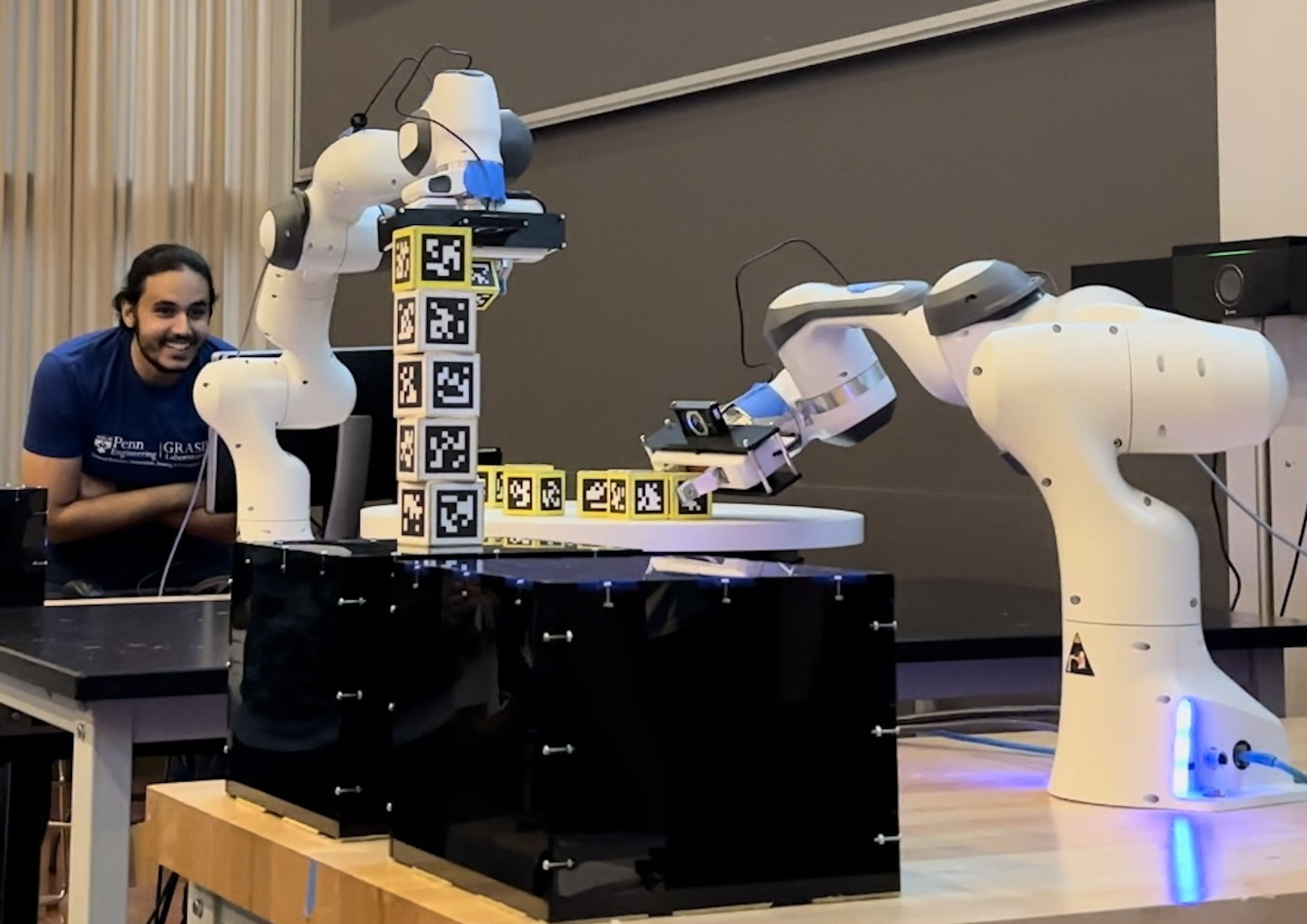 Develop robust algorithm for Franka Emika robot arm to acquire blocks (either stationary or in motion) and stack them on a goal platform (forward and inverse kinematics, ROS, Dijkstra’s algorithm/ A-star, DH Algorithm)